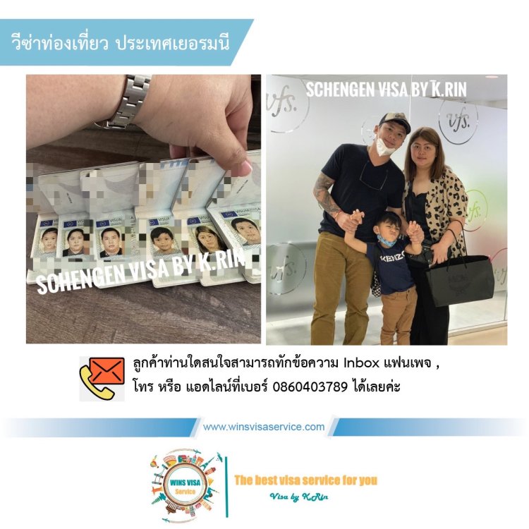 1.วีซ่าท่องเที่ยว (วีซ่าระยะสั้น) วีซ่าท่องเที่ยวประเทศเยอรมนี หรือ เรียกอีกอย่างหนึ่งว่า วีซ่าเช้งเก้น (Schengen) สำหรับผู้เดินทางที่มีจุดประสงค์ต้องการเดินทางไปท่องเที่ยวในประเทศเยอรมนี รวมถึงท่องเที่ยวประเทศต่างๆ ในเขต Schengen Area คลิ๊กดูรีวิว > ผลงานที่ผ่านมา